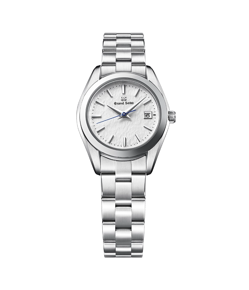 雪が降り積もり風にさらされた後に見られる、雪原の風紋の様子をダイヤルに映した、柔和な中に清らかな表情を見せるモデルです。純白のダイヤルに鮮やかなブルースチールの秒針が映え、見るたびに心の引き締まるような印象を持っています。