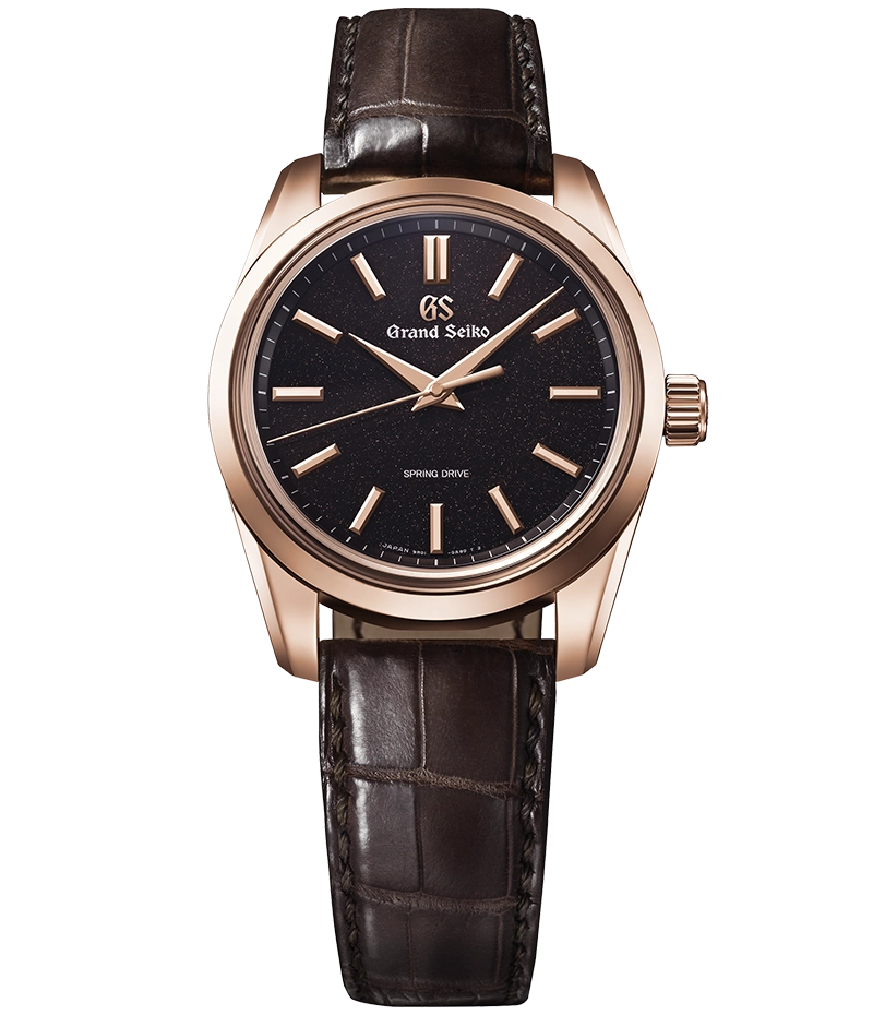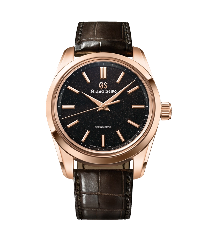 本作は、スプリングドライブをベースとした複雑時計や最高級品を手がける専門工房「マイクロアーティスト工房」でつくられるグランドセイコー「9Rスプリングドライブ 8 Days」です。18Kピンクゴールド製のケースは卓越した研磨技術によって仕上げられ、信州の山々の頂の上で星降る夜空をモチーフとしたダイヤルと相まって特別なきらめきを味わえるモデルです。