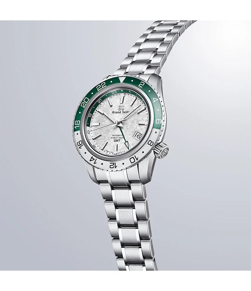 ムーブメントは、外乱に強く携帯時の高精度を実現した、自動巻メカニカルハイビート36000 GMT「キャリバー9S86」を搭載。スポーティな雰囲気を醸す、最大3つの異なるタイムゾーンを確認できる回転ベゼルの存在感も、このモデルの特徴のひとつです。