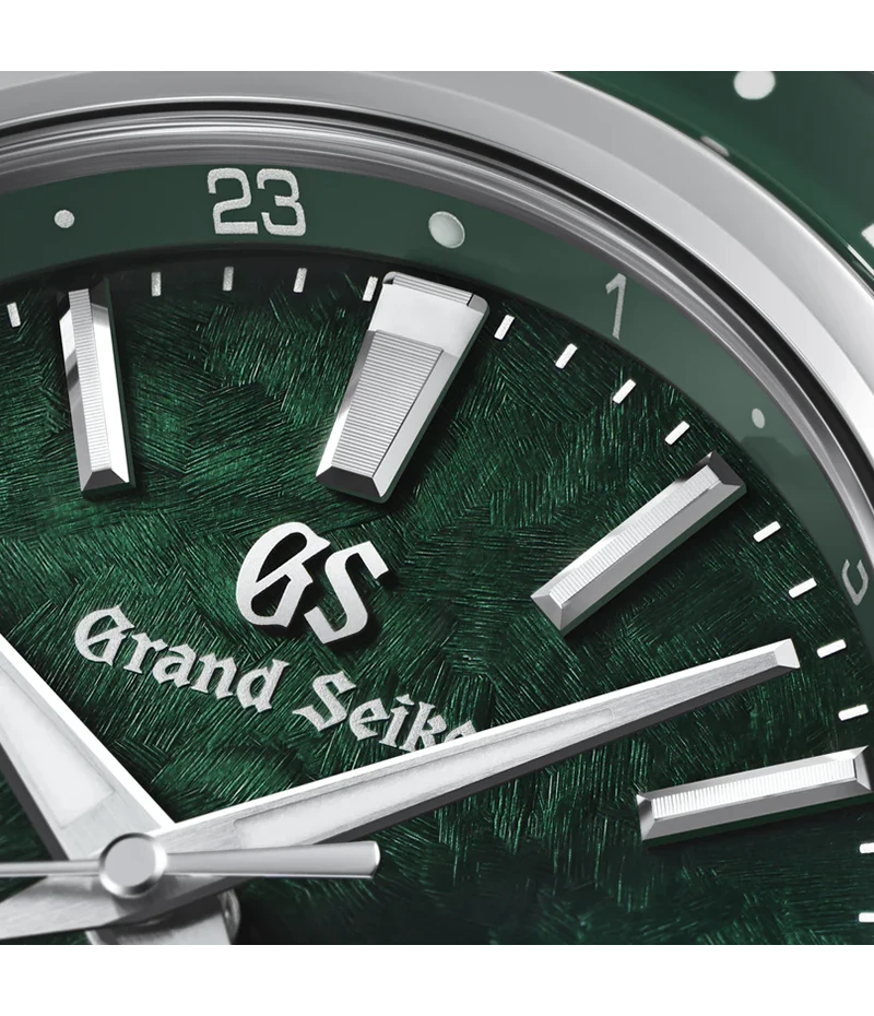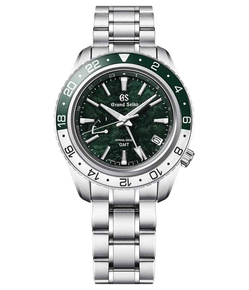 グランドセイコーのスプリングドライブウオッチは、穂高連峰を望む「信州 時の匠工房」で、熟練の職人によるハンドメイドで作られています。遥か昔の火山活動で大陸が激しく隆起して生まれた穂高連峰は、長い年月の風雪に山肌を削られてダイナミックな山岳地帯になりました。 その急峻な岩稜を表現する有機的なダイヤルパターンを施した「SBGE295」は、穂高の短い夏の鮮やかな情景から着想を得たグリーンのダイヤルが印象的なモデルです。