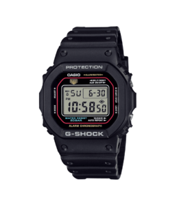 1983年に誕生したDW-5000Cのデザインを継承しているスクエアフェイス5600シリーズのマルチバンド6搭載モデルです。ファーストモデルDW-5000のケース形状、文字板デザインを受け継ぎ、クラシカルなデザインとしました。タフネスをコンセプトに進化を続けるG-SHOCKの中で、ファーストモデルのDNAを受け継ぎ、更に進化したモデルです。