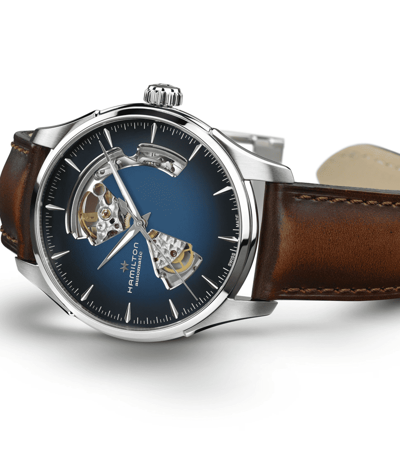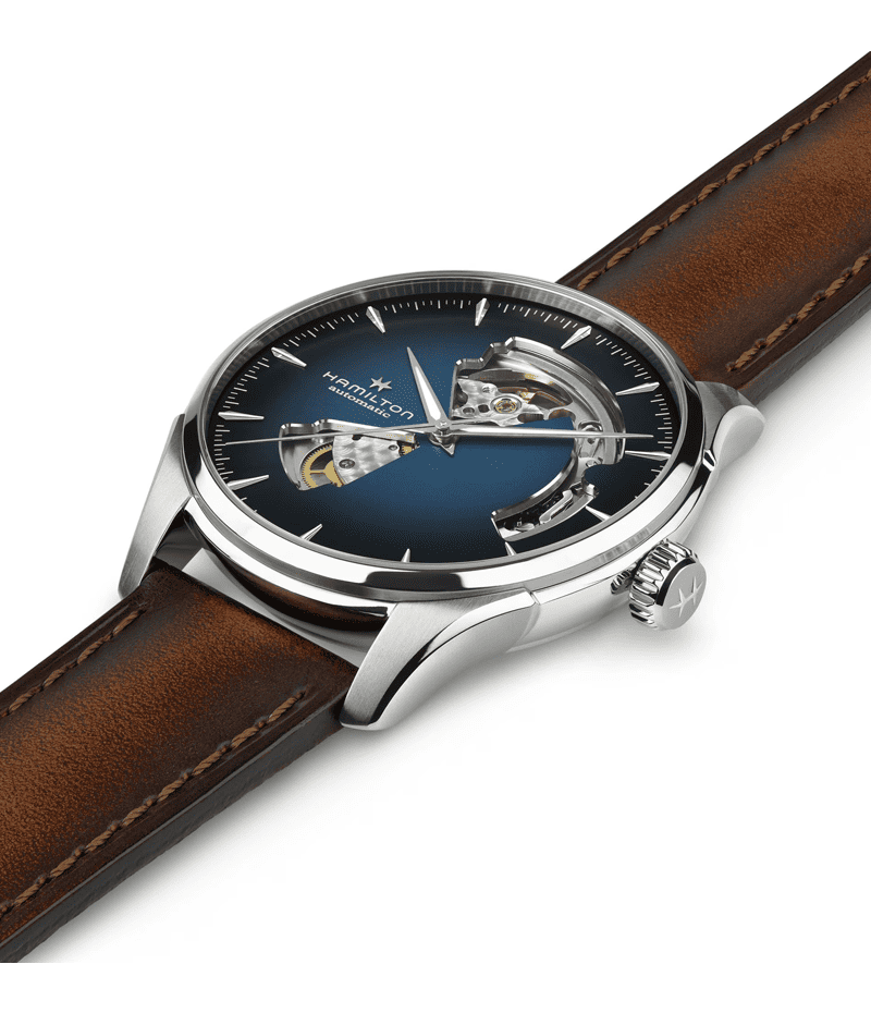 きらめくスモークダイヤルが、「ジャズマスター オープン ハート」の精巧なカットアウトへ視線を集めます。ムーブメントを垣間見ることができる魅力的な、このタイムピースのモダンなスタイルは、唯一無二であり、汎用性にも優れています。