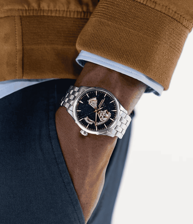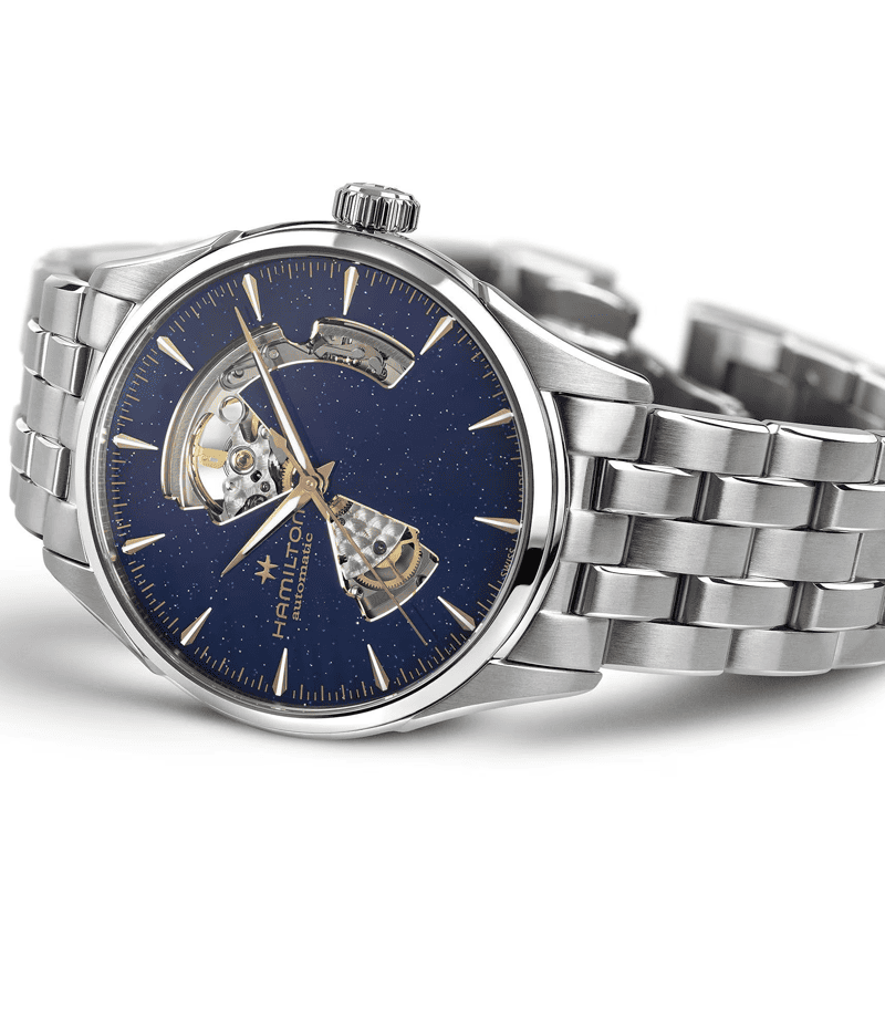 ハミルトンの進化し続けるクラフツマンシップとディテールへのこだわりを体現したダイヤルには、自動巻きムーブメントH-10を採用。ニヴァクロン™製ヒゲゼンマイにより、標準持続時間80時間を誇る「ジャズマスター オープン ハート」には、精緻なステンレススチール製ブレスレットが合わせられています。 ハミルトンのドレスウォッチコレクションをご覧ください。
