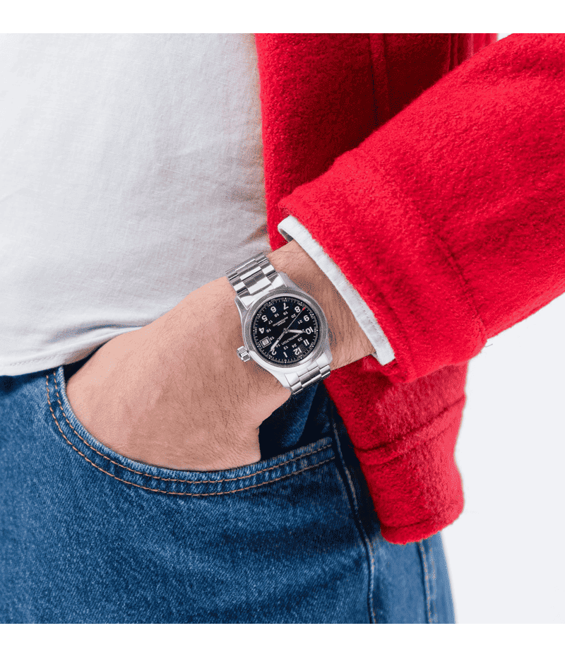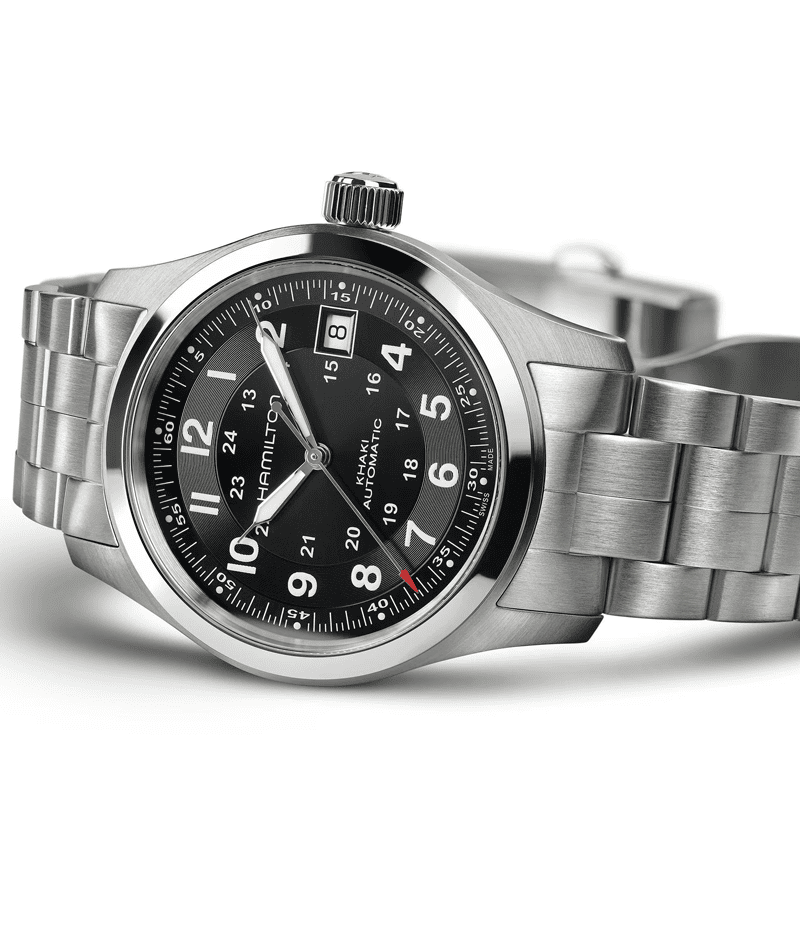 80時間の標準持続時間を実現した専用のH-10自動巻きキャリバーを搭載したカーキ フィールド オートは、その歩みを止めることはありません。