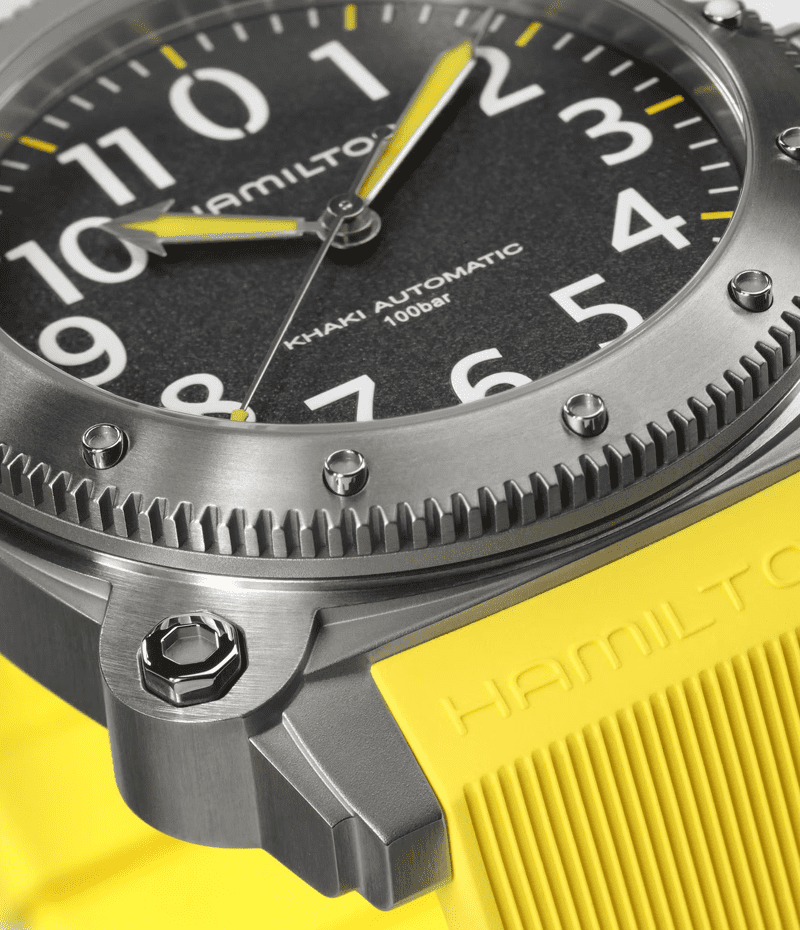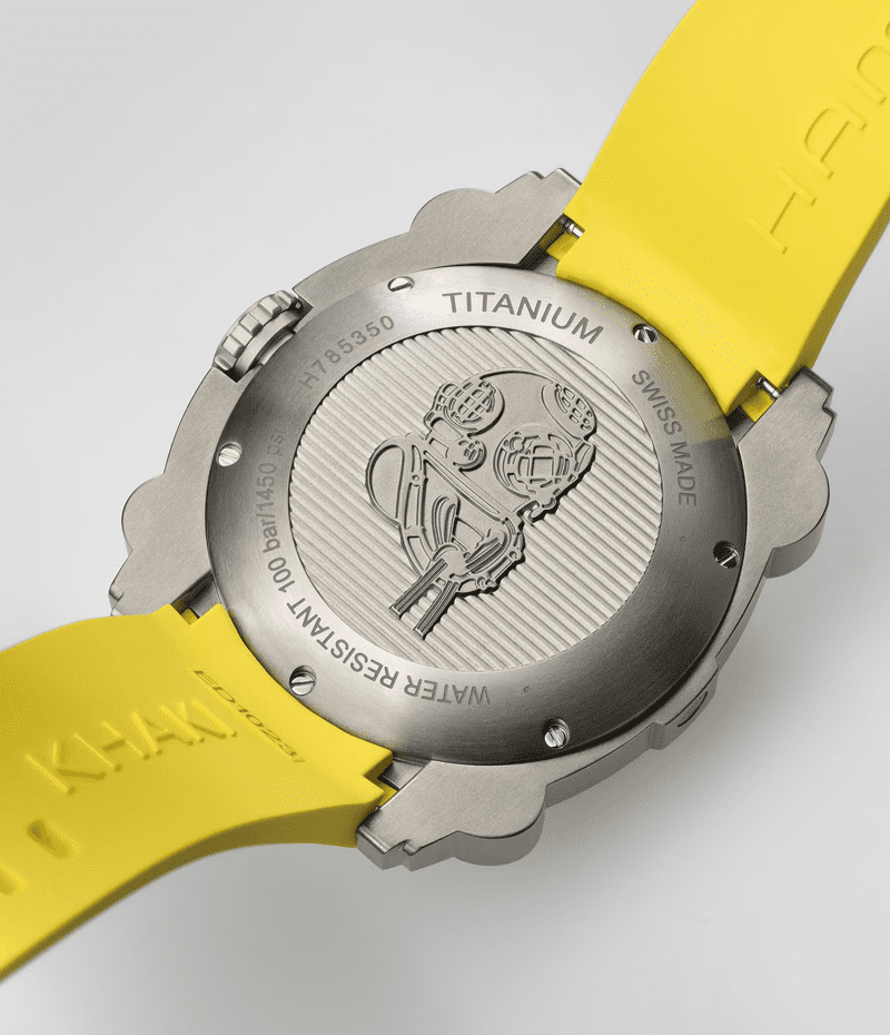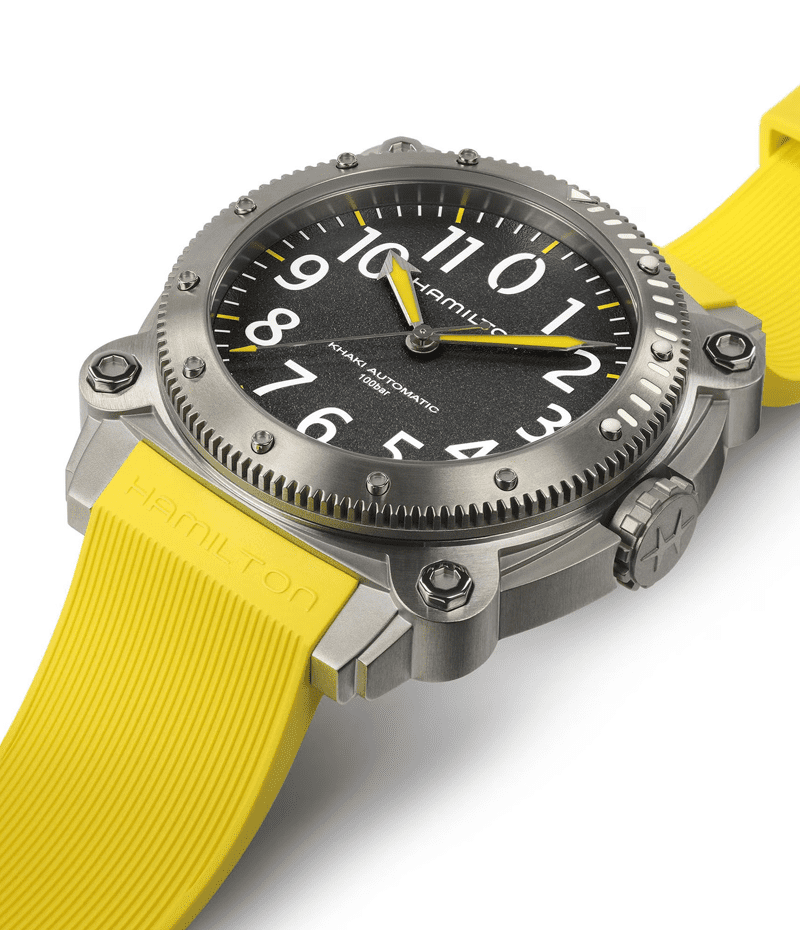 100気圧(1,000m)防水機能に加え、ヘリウム混合気体を使った飽和浸水対応のヘリウムエスケープバルブを搭載する「カーキ ビロウゼロ」は、深海の冒険での完璧なパートナーです。
