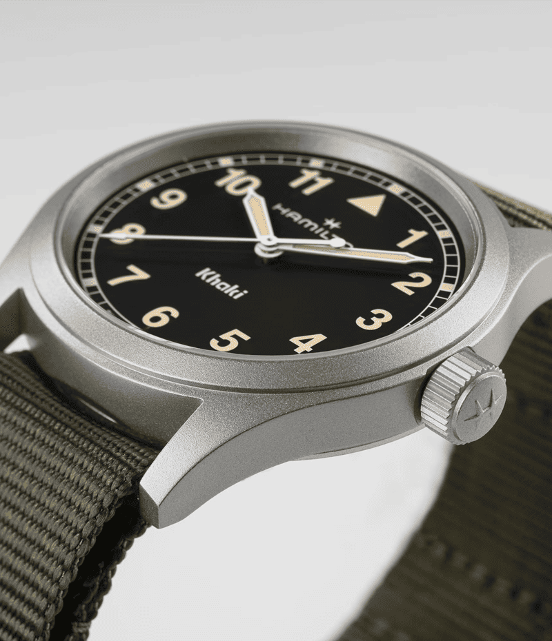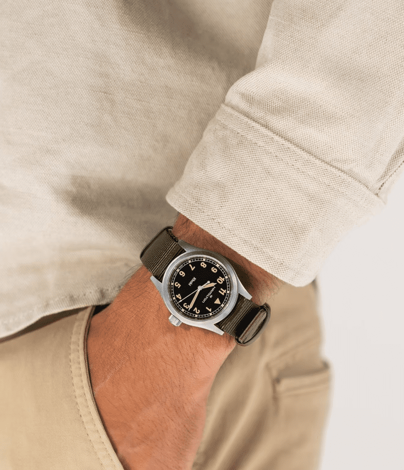 デザインのシンプルさでハミルトンのミリタリーウォッチとしての歴史への回帰を表現する「カーキ フィールド クォーツ」。