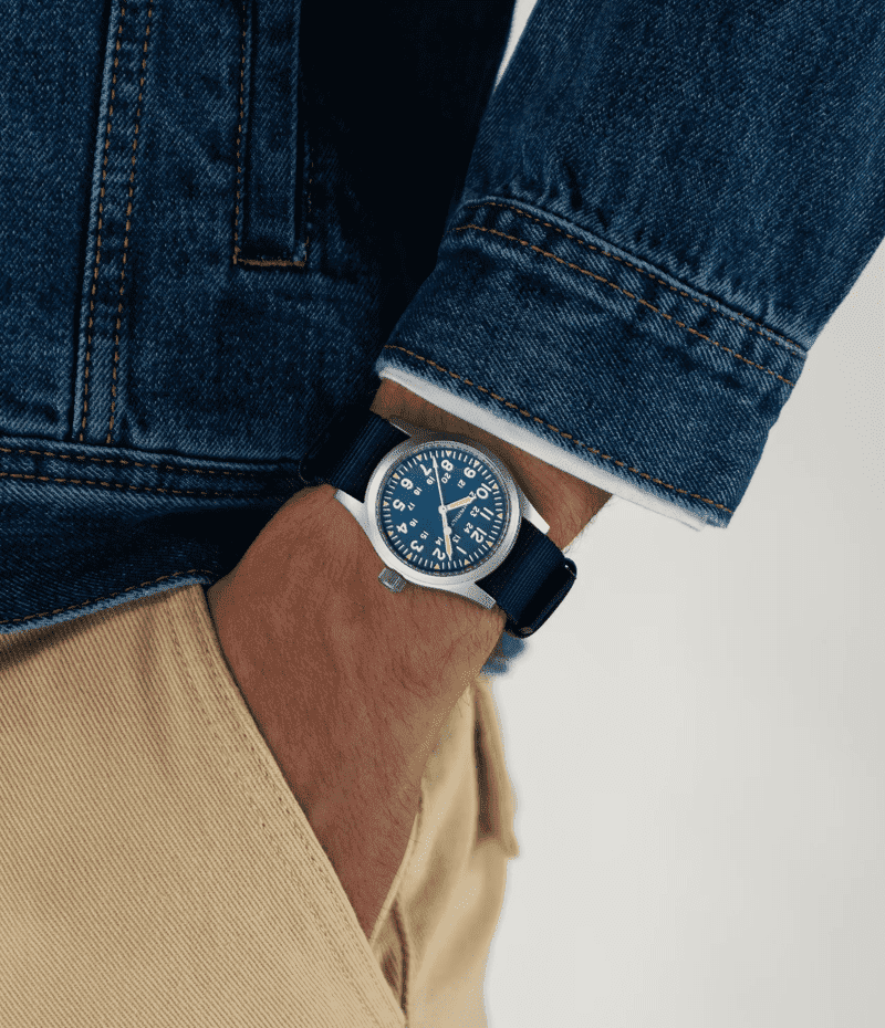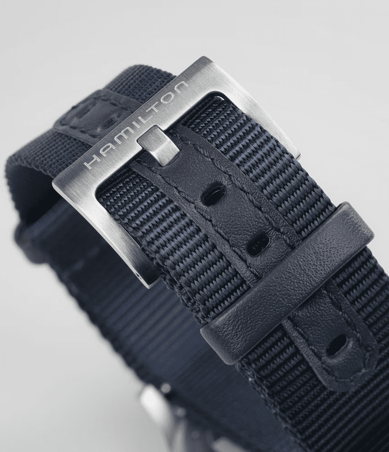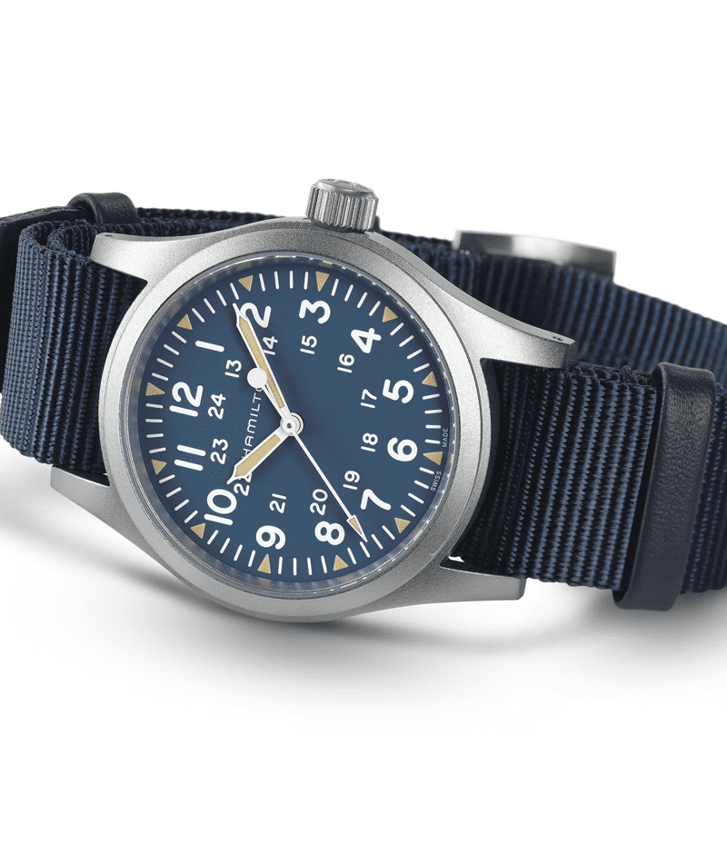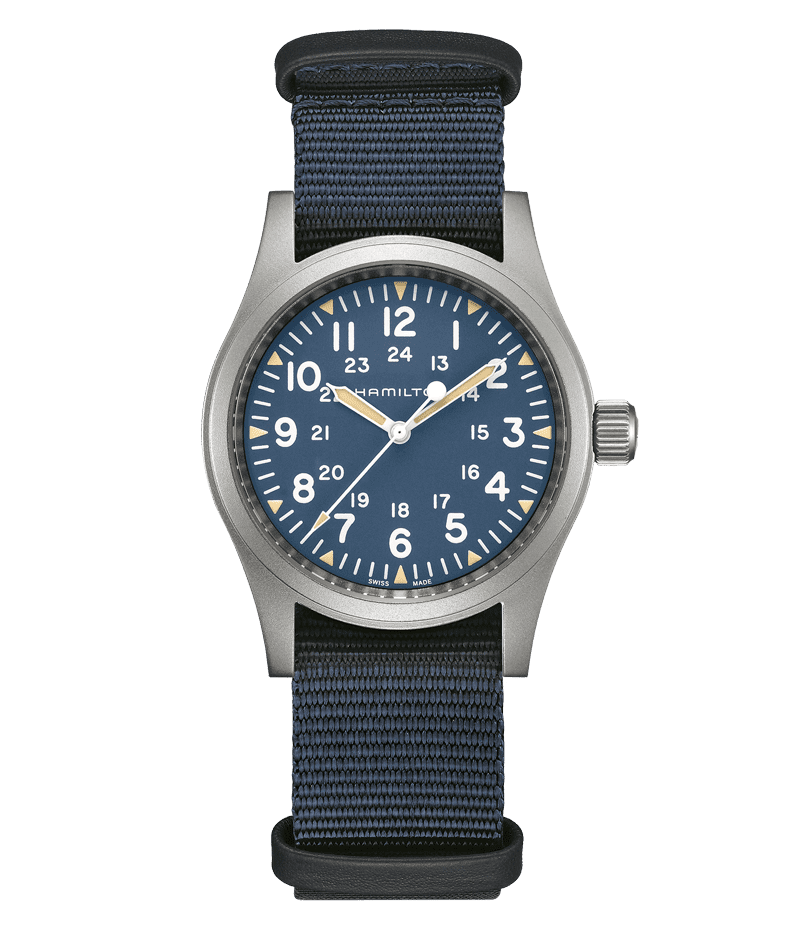 タフなNATOストラップを採用した「カーキ フィールド メカ」は、1960年代のオリジナルモデルに忠実な復刻版で、ハミルトンのミリタリーウォッチとしての歴史を継承しています。