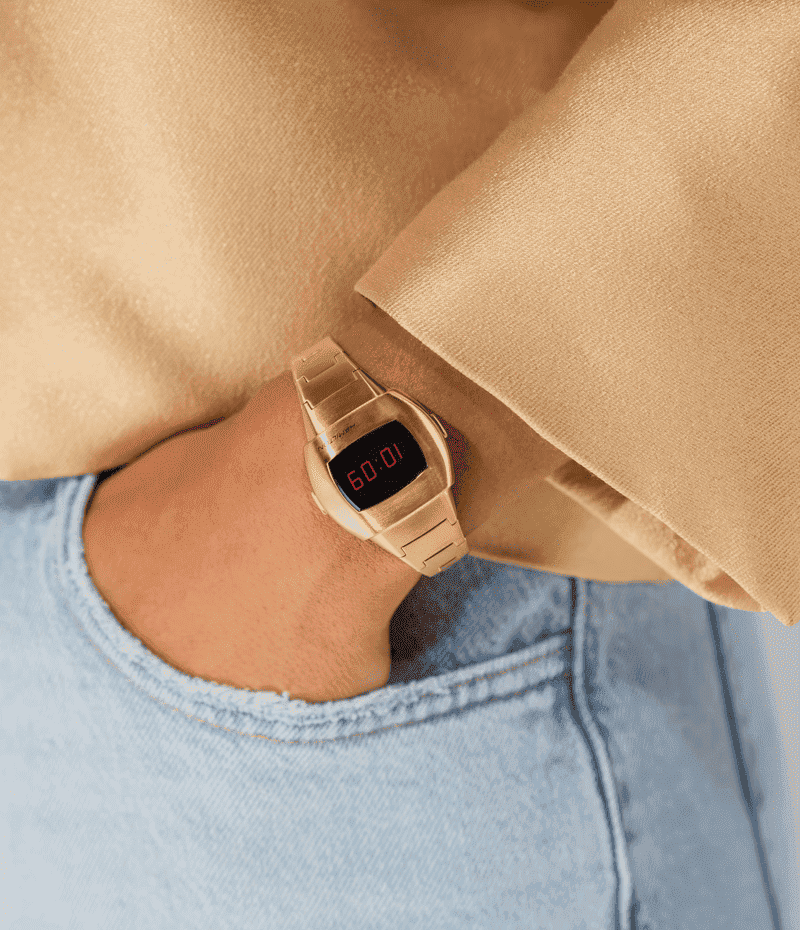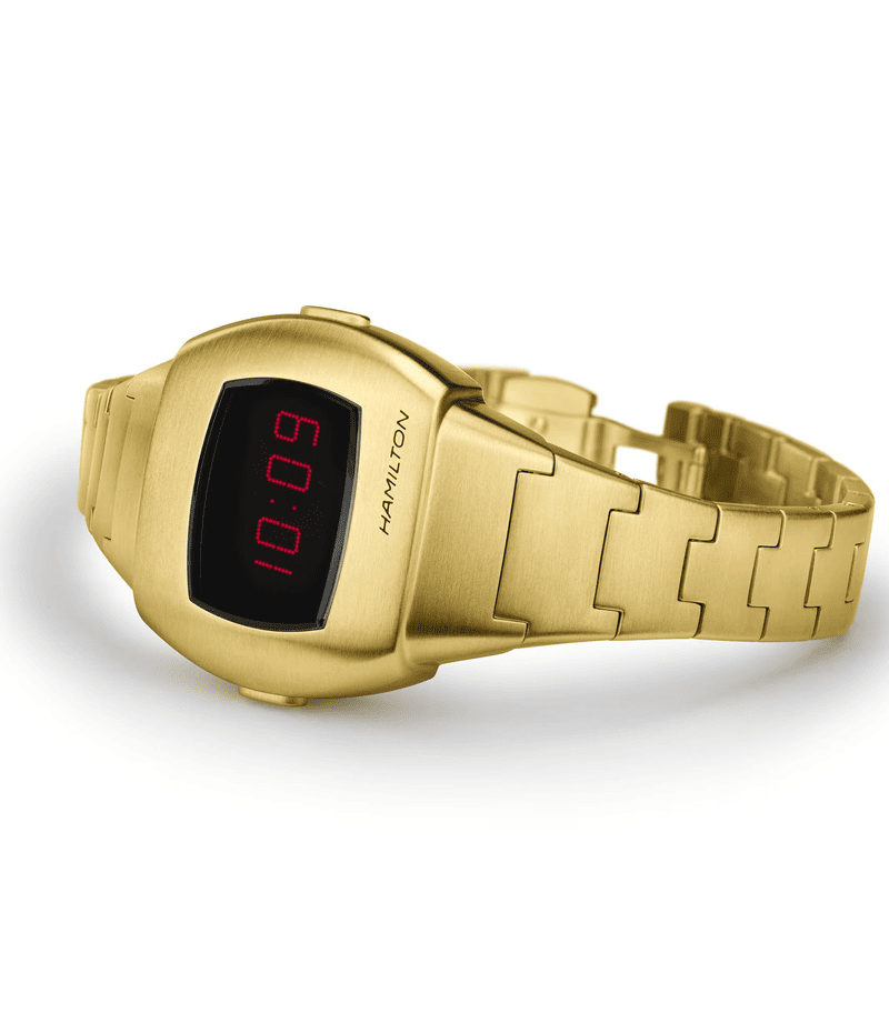 クールさはそのままに、現代に合わせてアレンジした「PSR」。世界を一変させた初のデジタルウォッチと変わらず、紛れもないスタイルで戻ってきました。1974年に初めて登場したクッション型「ハミルトン パルサー」モデルのビンテージシェイプからインスピレーションを得て、宇宙まで行ける現代を象徴するモデルであり続けています。