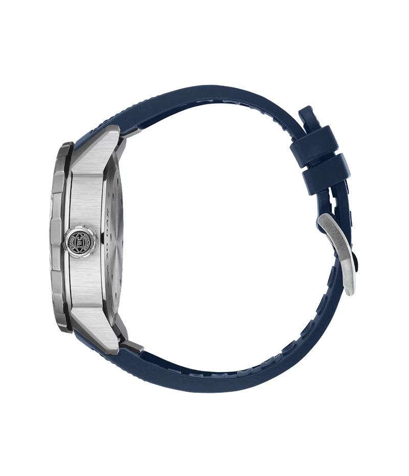 「アクアタイマー・オートマティック」は、30気圧防水で、直径42mmの腐食に強いステンレススチール製ケースを備えたダイバーズ・ウォッチです。ブルーの文字盤に配置されたダイビング用表示には夜光塗料が塗布され、水中でも優れた視認性を提供します。