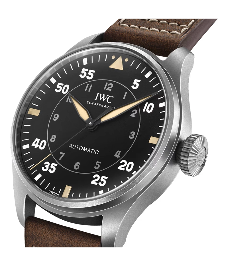 「パイロット・ウォッチ」のスピットファイアシリーズには、IWCの歴史におけるこうした一幕が反映されています。「ビッグ・パイロット・ウォッチ」に特有のデザインを呈するこの「ビッグ・パイロット・ウォッチ 43・スピットファイア」は、目を引く円錐型のリューズと人間工学に基づいた直径43mmのケースに、特徴的なミリタリーデザインが組み合わされています。