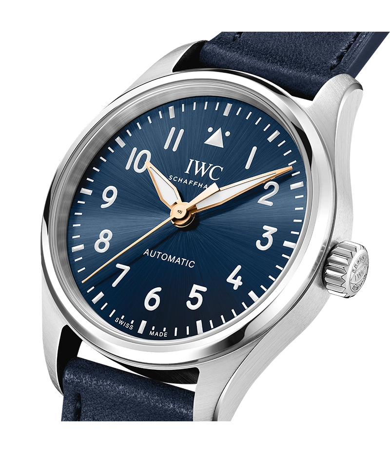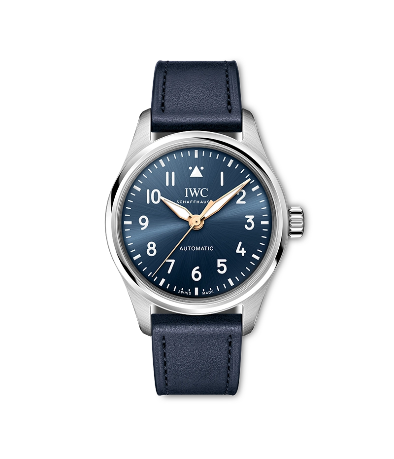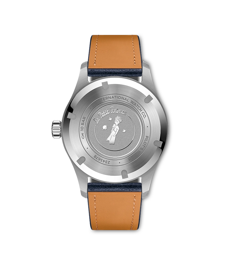 36mmのステンレススチール製ケースを備えた「パイロット・ウォッチ・オートマティック 36 “プティ・プランス”」は、明快な機能性と時代を超えるエレガンスを兼ね備えたタイムピースを求める方のためにデザインされています。洗練されたサンレイ仕上げを施したディープブルーの文字盤は、アントワーヌ・ド・サン=テグジュペリの最も名高い作品にオマージュを捧げて生まれたこの特別モデルに、印象的な視覚的奥行きを与えています。