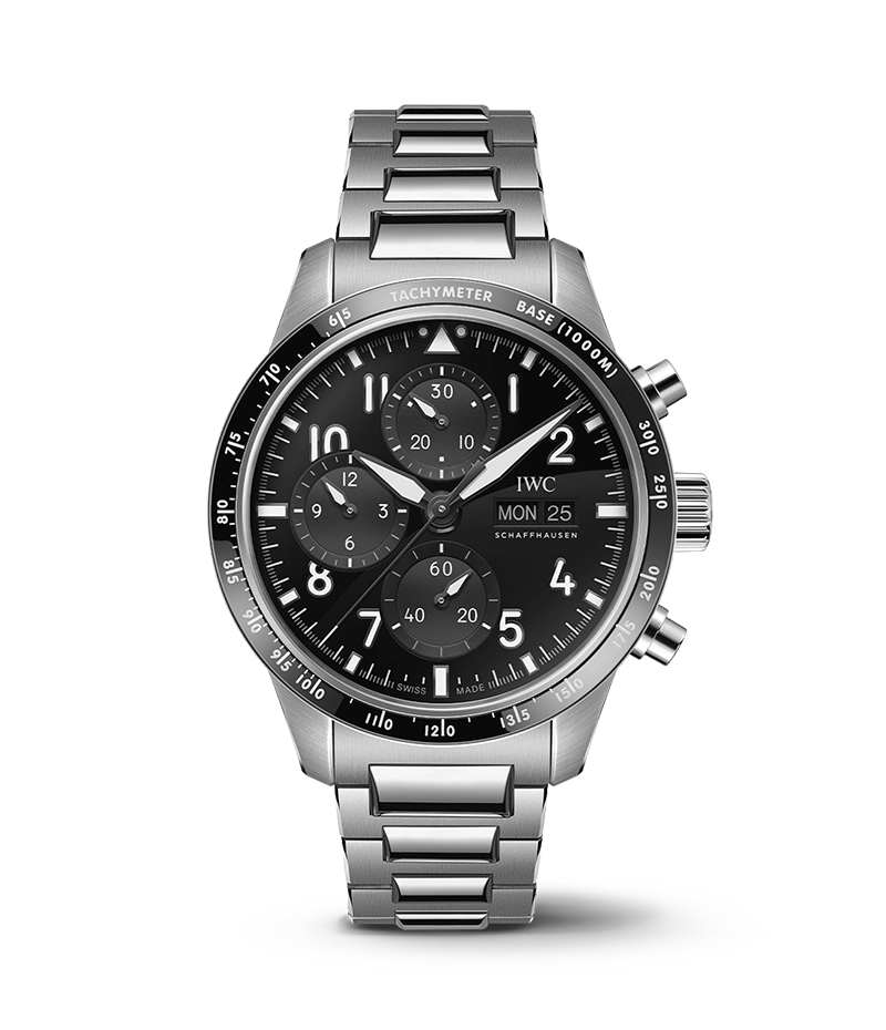 このウォッチの卓越した機能のひとつが、タキメーター・スケールを備えるセラミック製ベゼルです。これにより、移動距離に対する平均速度を算出することが可能になっています。サブダイヤルはIWCらしい垂直のレイアウトで配置され、計測された分を12時位置に表示する視認性の高いデザインに仕上げられています。