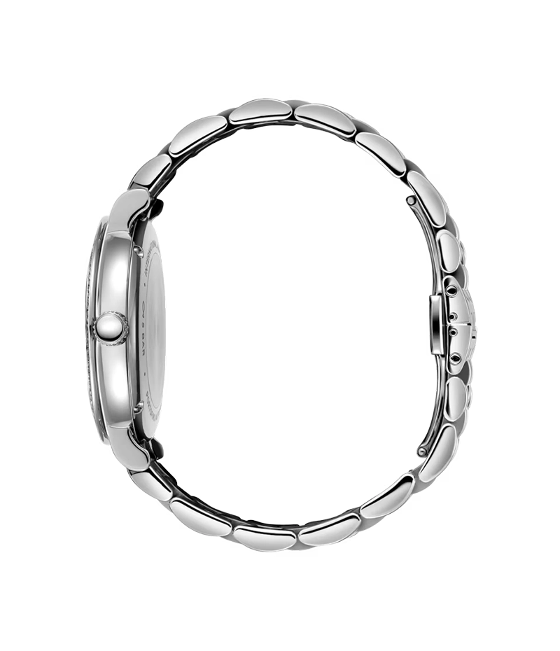 ステンレススチール製ケース、シルバーコーティングの文字盤、ロジウムコーティングの針とアップライト・インデックスを備え、ケースと文字盤は66個のダイヤモンド(約1カラット)で装飾されています。より多くの光を反射するように、ダイヤモンドのセッティングが改良されたため、一段と目を引く煌めきを放ちます。