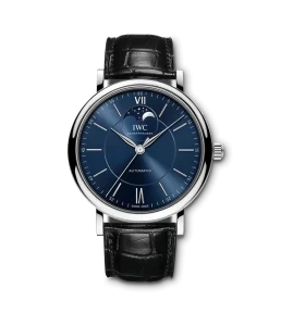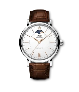 この「ポートフィノ・オートマティック・ムーンフェイズ」は、18Kレッドゴールド製ケースに、シルバーコーティング仕上げの文字盤とゴールドコーティングの針を備え、ブラックのアリゲーター・レザーストラップを組み合わせています。