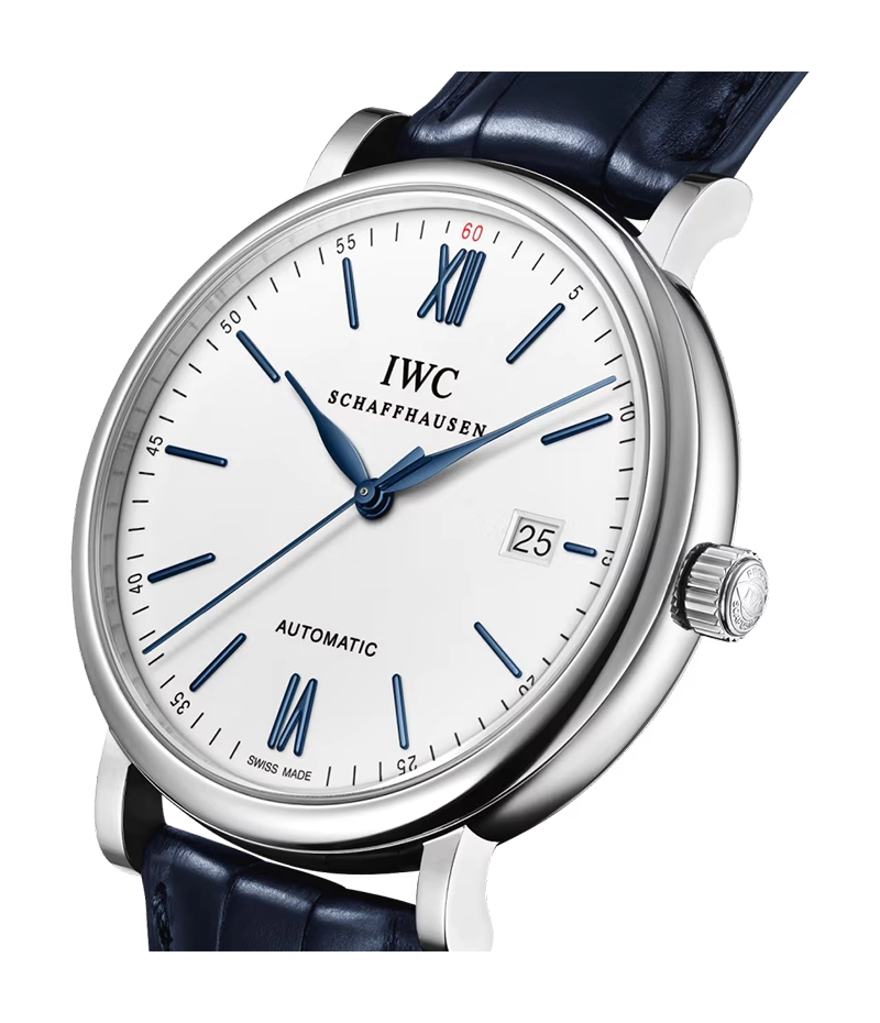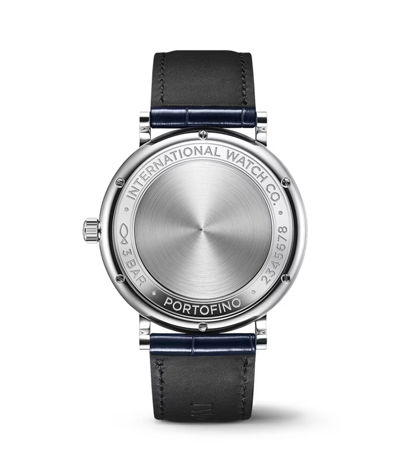 「ポートフィノ・オートマティック」は、直線的なラグを備えたクラシックなラウンドケース、アップライト・インデックスとローマ数字、スリムなリーフ針といった、ポートフィノの特徴的なデザイン要素をすべて備えています。