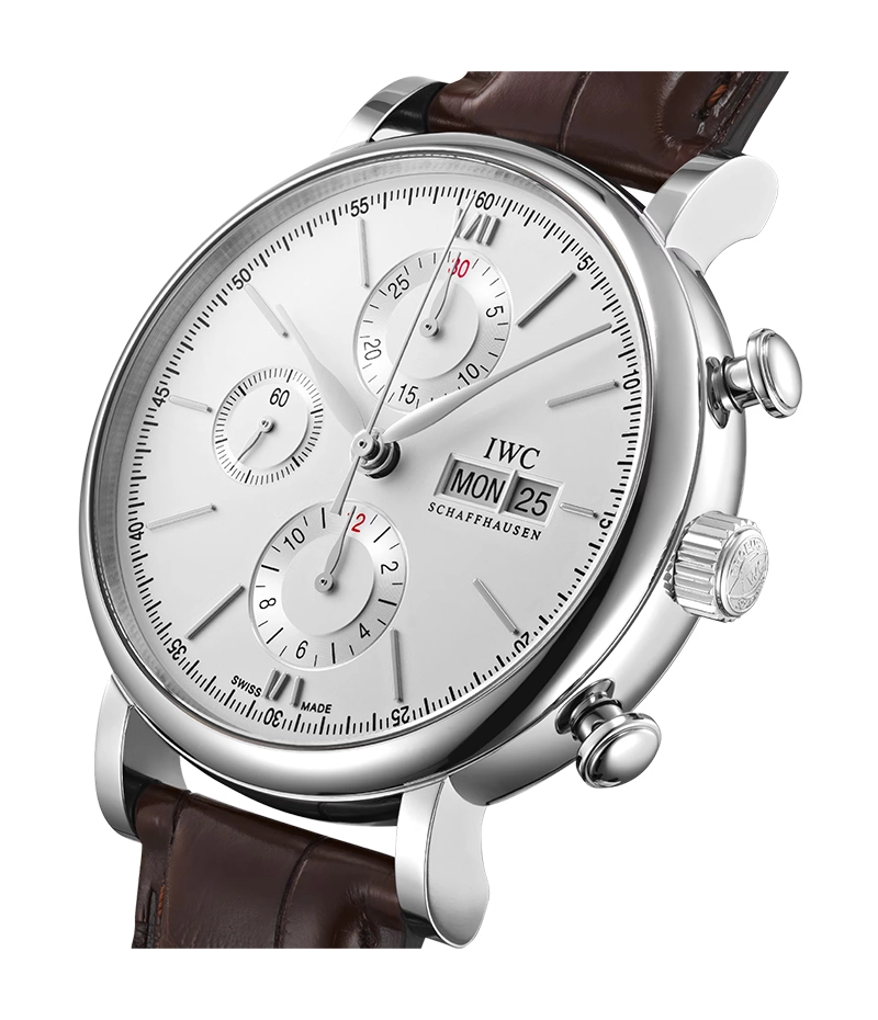 テクニカルな雰囲気を漂わせる機能的な文字盤と、特徴的なプッシュボタンを備えるこのクロノグラフは、「ポートフィノ」コレクションに若々しいスポーティーな表情をもたらします。
