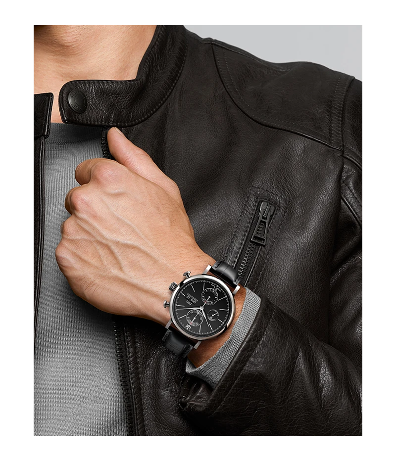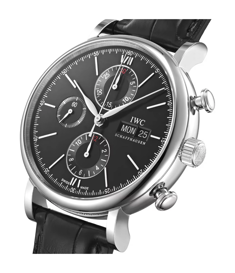 テクニカルな雰囲気を漂わせる機能的な文字盤と、特徴的なプッシュボタンを備えるこのクロノグラフは、「ポートフィノ」コレクションに若々しいスポーティーな表情をもたらします。