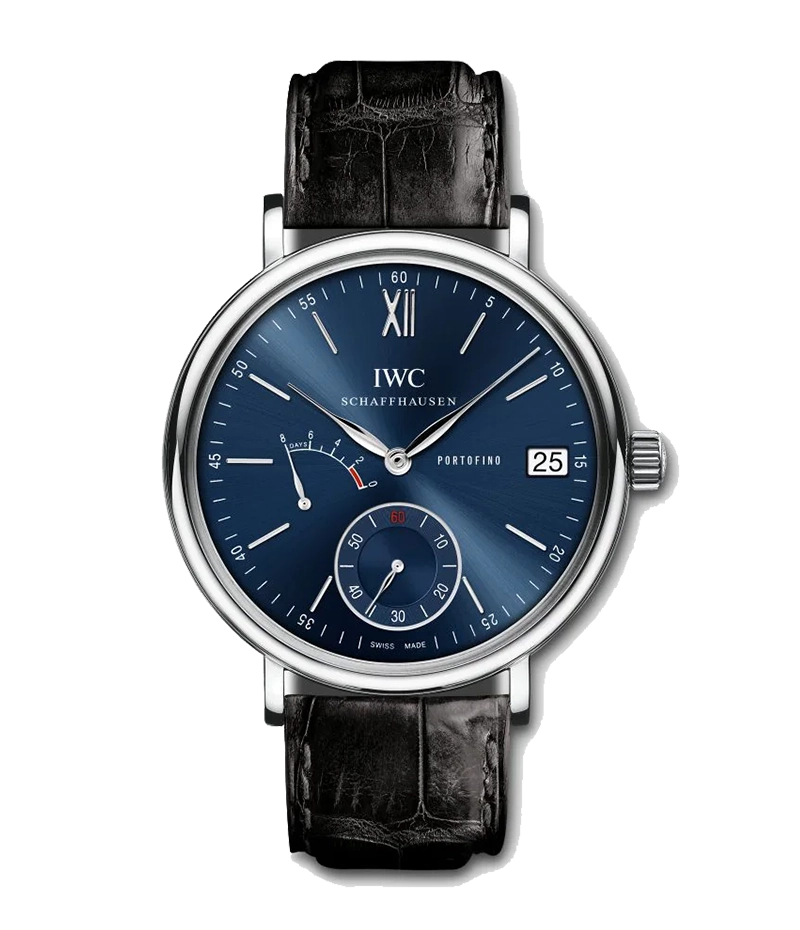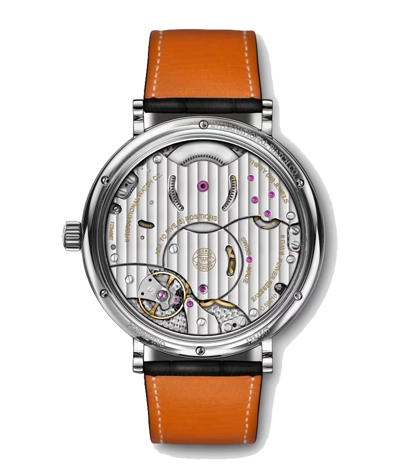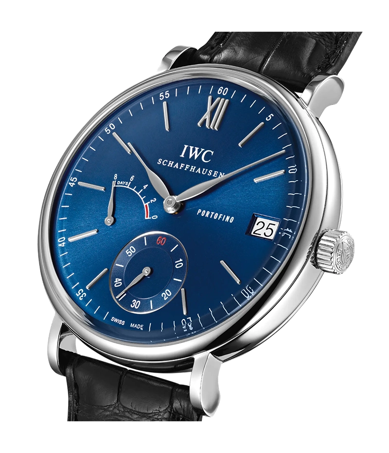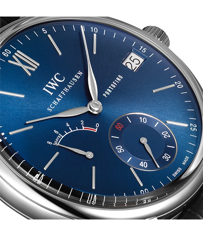 「ポートフィノ・ハンドワインド・エイトデイズ」は、192時間、つまり8日間のパワーリザーブを誇る自社製「キャリバー59210」を搭載します。実は9日間ものパワーリザーブを保持しますが、1日分の予備を備えることにより、8日間にわたって出来る限り安定した駆動トルクを保ち、その結果、高い精度を保証しています。週に1度巻き上げれば、あとは心配ありません。