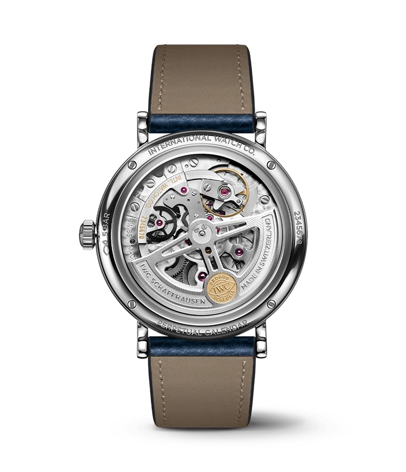 IWCの伝説的な永久カレンダーは、IWCで時計技師のリーダーを務めていたクルト・クラウスが1980年代に開発したものです。この巧妙な機構は機械的にプログラムされ、各月の日数の違いと閏年を認識し、《2100年まで調節を一切必要とせず》に正確に作動し続けます。