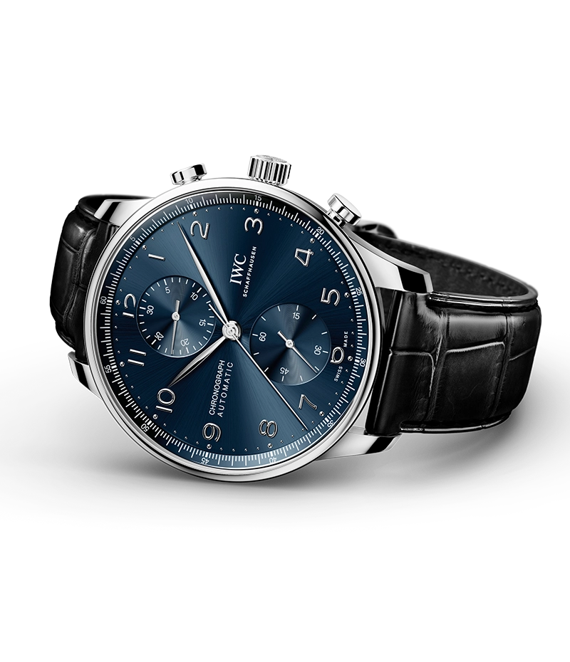 ひと目でIWCとわかるタイムピース——ポルトギーゼ・クロノグラフは、41mmというクロノグラフとしてはコンパクトな直径で、どんな腕にもフィットし易いサイズですが、スリムなベゼルにより、着用時には実際よりも存在感を増すタイムピースです。