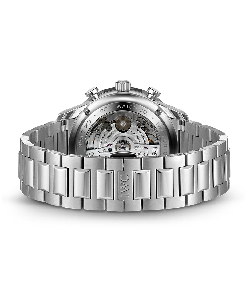2つのイン・ダイヤル積算計と、1/4秒単位の目盛りをプリントしたインナーフランジを配した端正ですっきりとした文字盤。「ポルトギーゼ・クロノグラフ」の登場により、IWCは1998年にポルトギーゼ コレクションの中でもよりスポーティーなデザインを確立しました。
