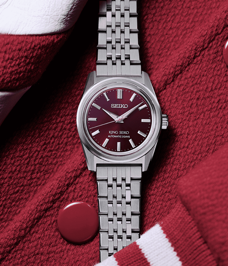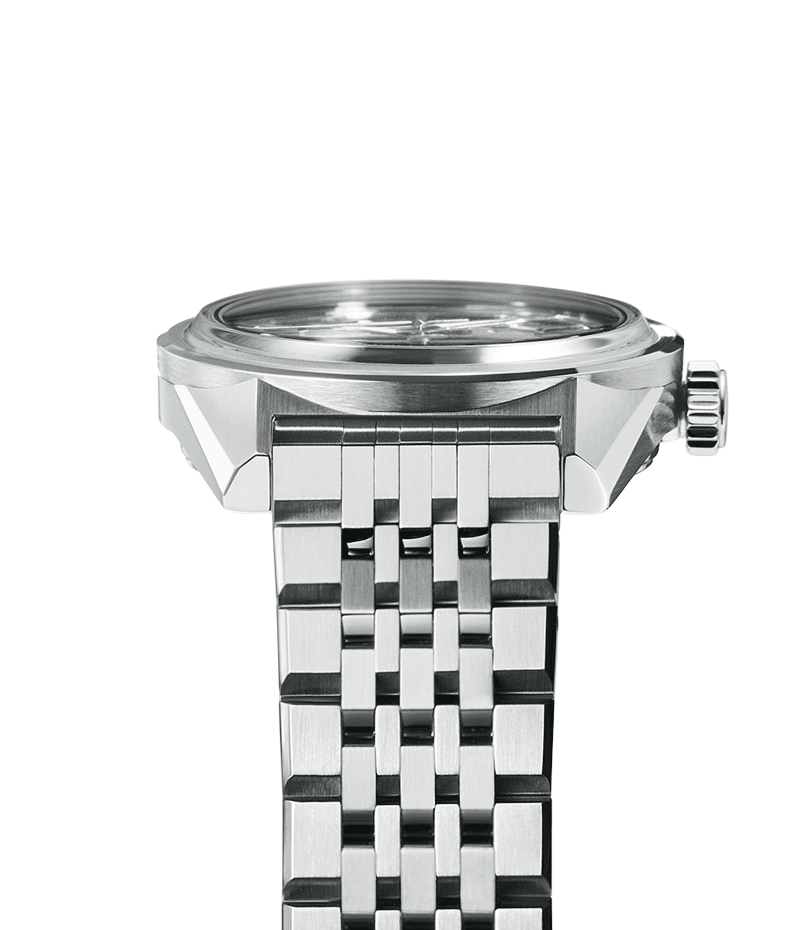 2022年のブランド復活から続く“KSK”シリーズに、シンプルな3針ダイヤルのモデルが登場。ケースサイズは、キングセイコーの現行モデルで最小となる36.1mmです。鏡面とヘアラインに磨き分けることで、コンパクトでありながら、“KSK”シリーズの特徴である稜線の際立つシャープなケースに仕上げました。