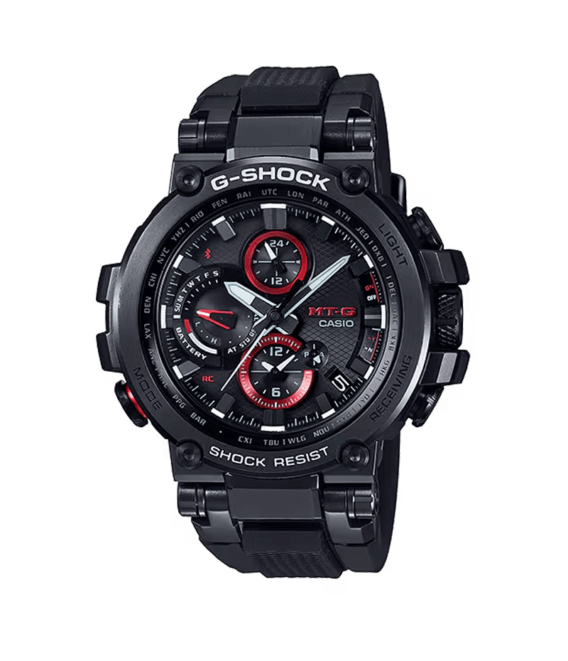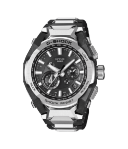 バンドを接続するカン足とパイプを一体にし、モジュールを保護する「コアガード構造」を採用。センターケースにカーボンファイバー強化樹脂を用い、軽量化と耐衝撃性を実現しています。MT-Gシリーズ初のミドルサイズ化とソフトウレタンバンドにより装着性を高め、ケースとバンドの接続は耐振動構造としました。