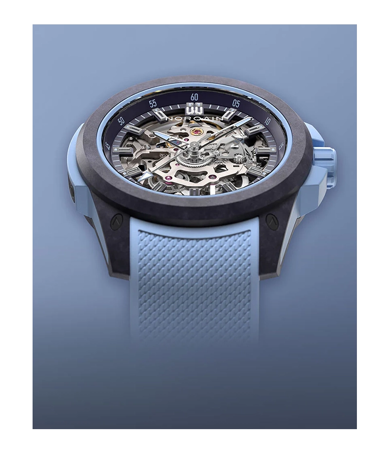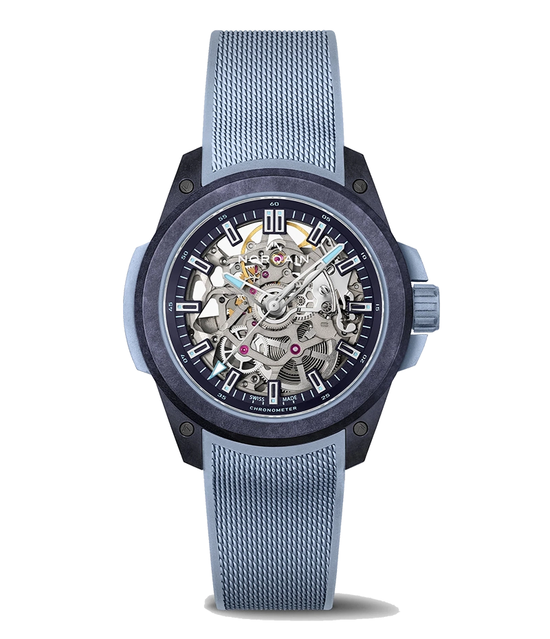 「Wild ONE 39mm」は、独自開発の超軽量かつ超高耐久のカーボン複合素材NORTEQ®を採用した、究極のスポーツウォッチです。機械式自動巻きスケルトンムーブメントを搭載し、その精巧なクラフトマンシップと精密なエンジニアリングを際立たせています。