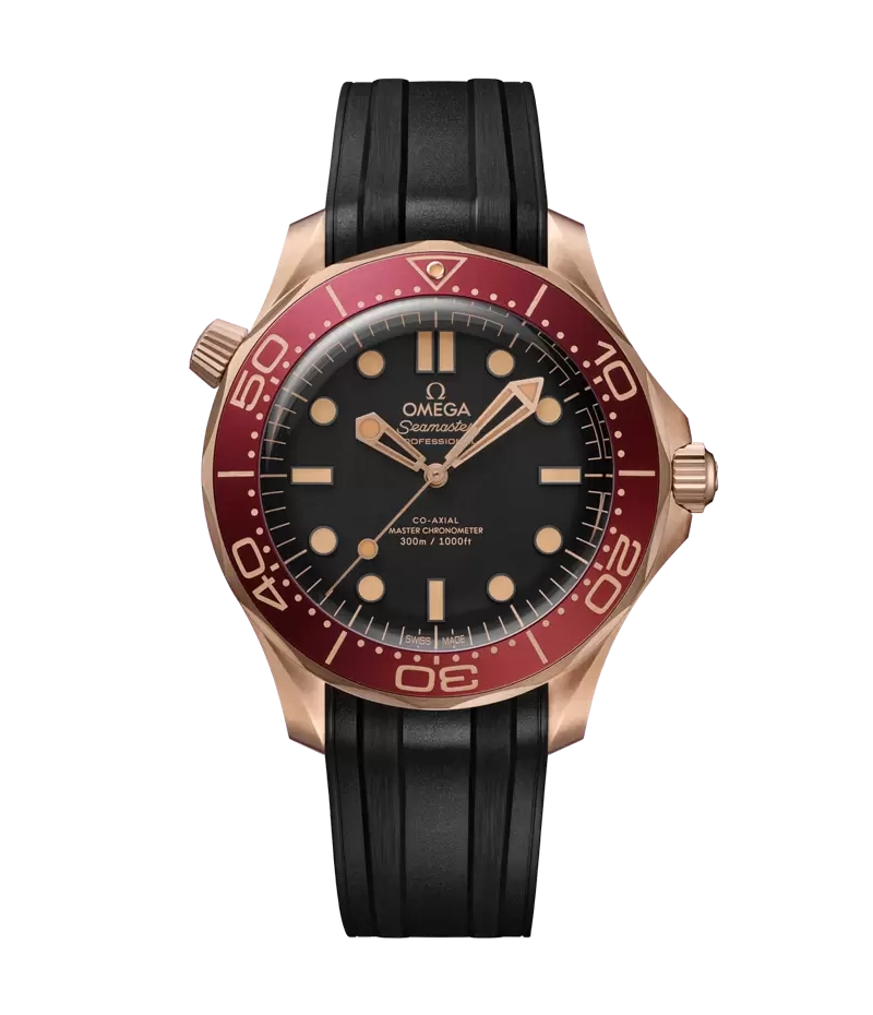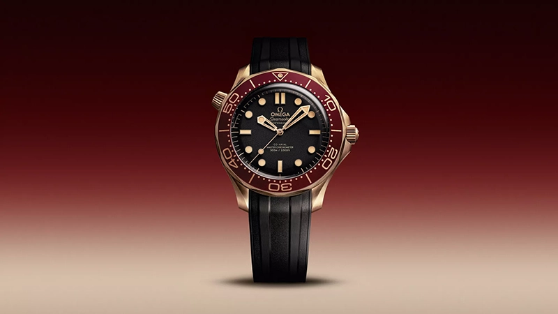直径42mmのケースのモデルは、オメガ独自の『ブロンズゴールド』*製です。シュウ酸アルマイト処理を施したバーガンディのアルミニウム製ベゼルリングに、ヴィンテージのスーパールミノヴァが塗布されたダイビングスケールを備えています。