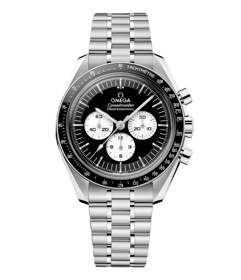 「スピードマスター ムーンウォッチ」は、世界で最もアイコニックなモデルのひとつです。1969年のアポロ11号をはじめ、歴史上のすべて(6度)に渡る月面着陸プロジェクトのすべてに携行された伝説のクロノグラフであり、オメガの冒険心あふれるパイオニアスピリットの象徴でもあります。