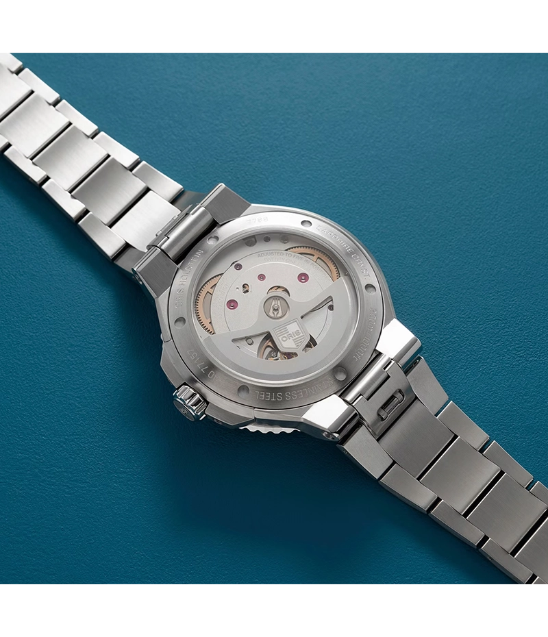 オリス自社製キャリバー400を搭載した初のモデル、アクイスデイト。そのアクイスが新世代へとアップデートされました。従来のデザインを継承しながらもダイヤル、ベゼル、針、インデックス、ブレスレット、リュウズガードに至るまで見直され、様々なシーンでも活躍できる仕上がりです。日常使いのラグジュアリーウォッチとしてビジネスでも、レジャーでも、どこへでもお供します。
