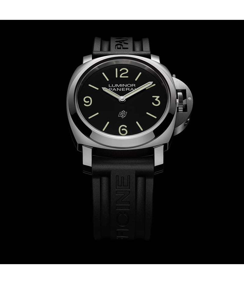 ルミノール ロゴ シリーズは、時分針のみを備えモデル、さらに9時位置にスモールセコンドカウンターを備えたモデルのいずれでも、パワフルで一目でわかるアイデンティティを備えた時計として、パネライ コレクションの中でもベストセラーのひとつであり続けています。