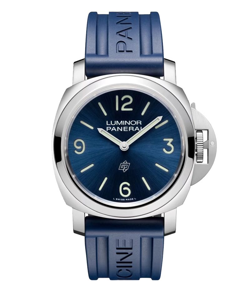 人目を惹き付ける、ミニマルなデザインのスポーツウォッチであるため、このモデルの唯一の装飾的要素はダイアル上の「OPのロゴ」のみとなっており、その他のディテールはすべてパネライの伝統に忠実に、機能性のみを備えたものになっています。