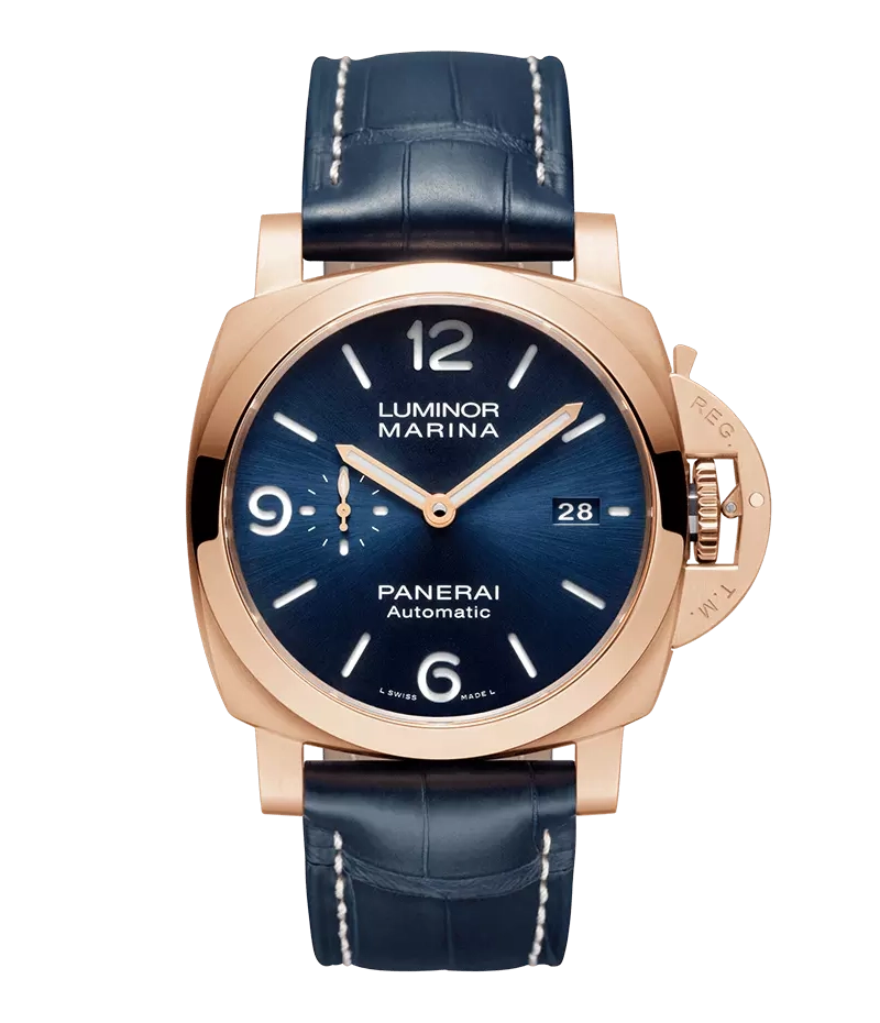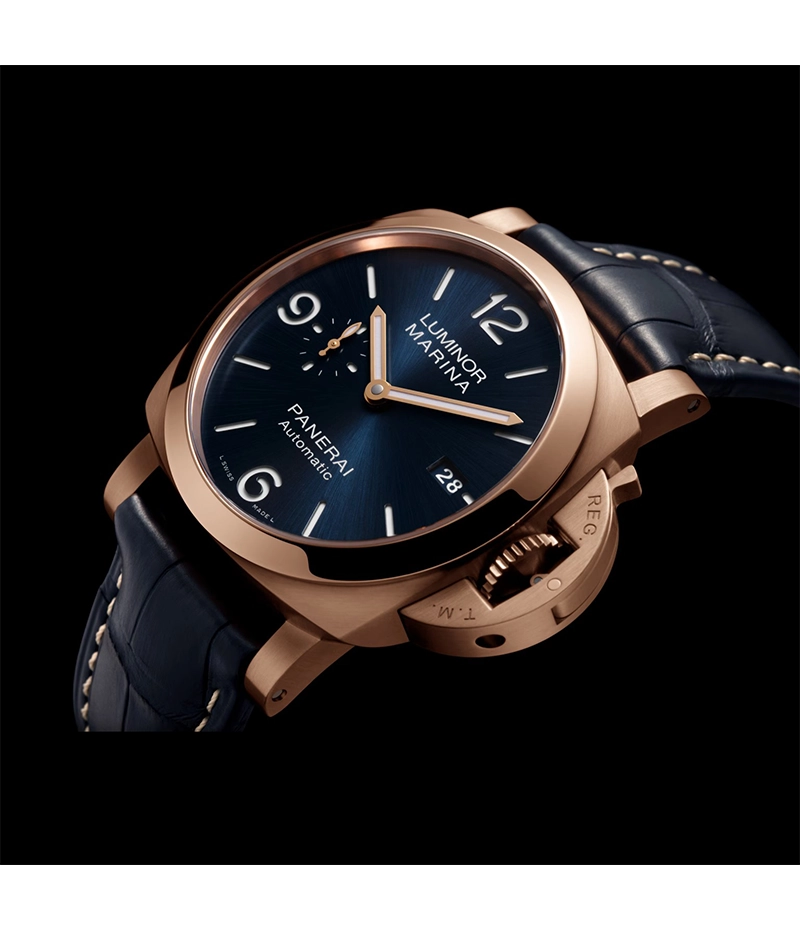 このモデルのケースに用いられる「パネライ ゴールドテック™」は、強烈な赤色を帯びた特殊な金合金です。 銅とプラチナを使用した特徴的なこの素材は、一般的なピンクゴールドやイエローゴールドよりも硬く、耐久性に優れています。