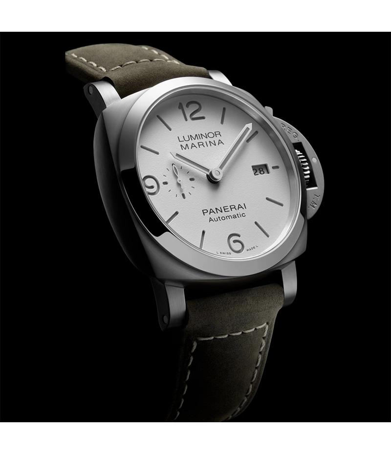 発光を意味する「ルミノール」という言葉は、オフィチーネ パネライを代表するシリーズの名称です。「ルミノール マリーナ(ルミノール1950モデル)」は、イタリア海軍の厳しい要求に応えるためのダイバーズ ウォッチを開発してきたブランドの伝統を継承しています。