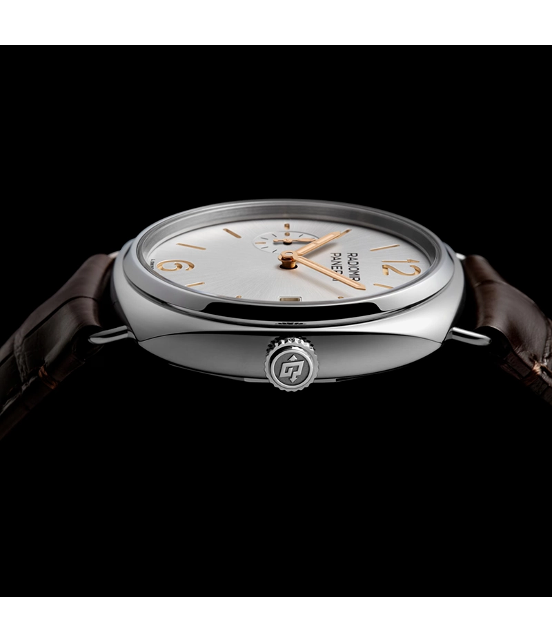 イタリア語で「40」を意味するクアランタは、コレクションの本質を定義する40mmのケースサイズを表します。あらゆる性別やシーンに対応する多才なシルエットを提案したラジオミール クアランタ のケースは、厚さ10.15mmで《パネライウォッチ史上最も薄い》仕上がりです。