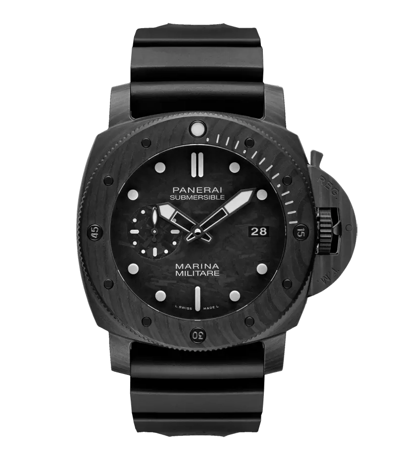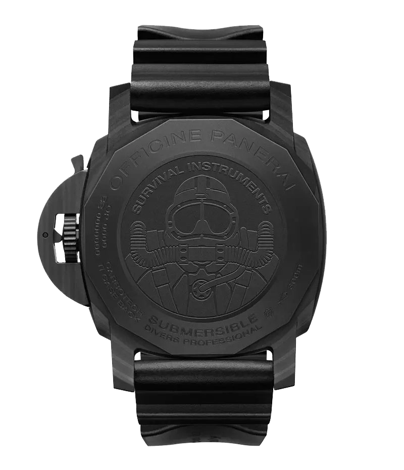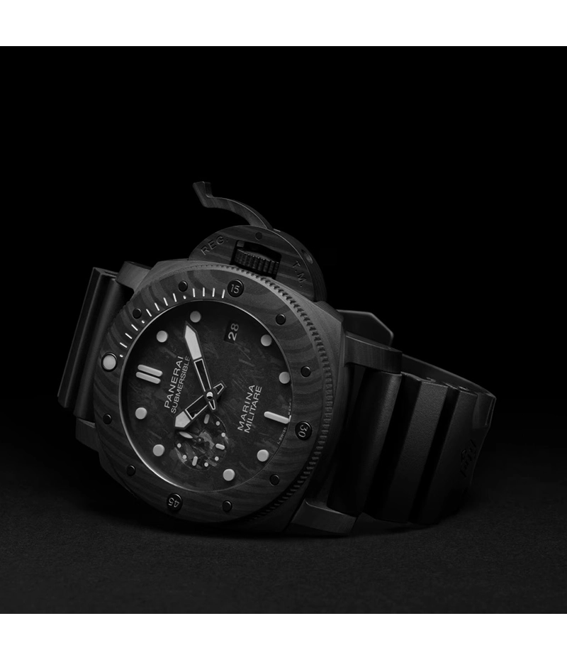 「サブマーシブル マリーナ ミリターレ カーボテック™」は、ケースバックにイタリア海軍特殊部隊からインスピレーションを得たイメージが刻印されたサバイバルギアと言っても過言ではありません。パネライでは数十年にわたり、イタリア海軍特殊部隊のための時計や精密機械を制作していました。 そして、今なお、パネライではイタリア海軍特殊部隊の伝説的な歴史を物語るような不屈の精神を体現する作品を作り続けています。