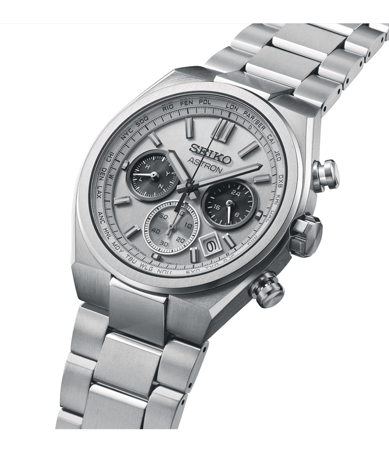 Nexterシリーズのデザインを継承し、ケースとブレスレットが一体となった先進的なフォルムを採用。ベゼルとダイヤルには筋目仕上げを施し、ソリッドで力強い印象とスタイリッシュな魅力を兼ね備えたモデルです。