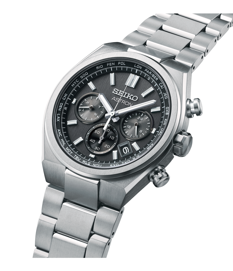 Nexterシリーズのデザインを継承し、ケースとブレスレットが一体となった先進的なフォルムを採用。ベゼルとダイヤルには筋目仕上げを施し、ソリッドで力強い印象とスタイリッシュな魅力を兼ね備えたモデルです。