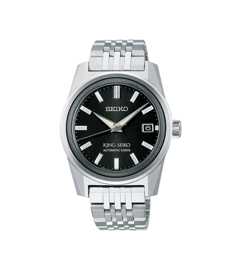 ダイヤルカラーは、キングセイコーが国産機械式時計の進化を牽引した1960~70年代のカルチャーから着想を得て採用しています。ダイヤルには縦方向のヘアライン仕上げを施すことで、経年変化したような味わいが表現されています。