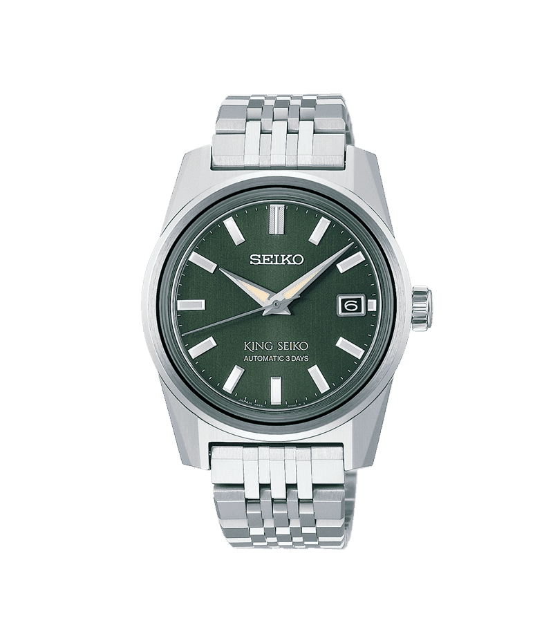 ダイヤルカラーは、キングセイコーが国産機械式時計の進化を牽引した1960~70年代のカルチャーから着想を得て採用しています。ダイヤルには縦方向のヘアライン仕上げを施すことで、経年変化したような味わいが表現されています。