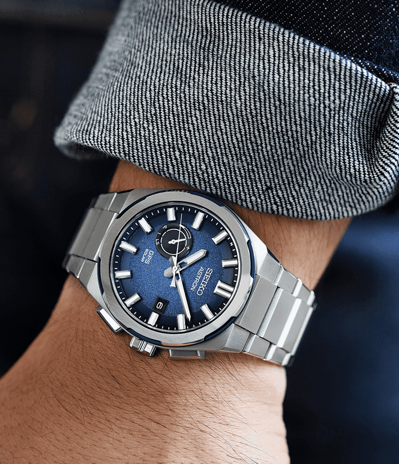 近未来的な二層構造のベゼルと天体をモチーフとしたダイヤルを組み合わせたモデル