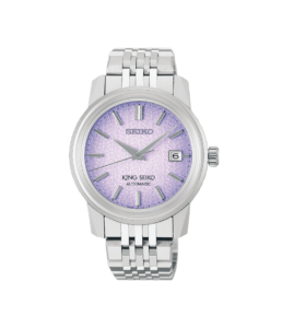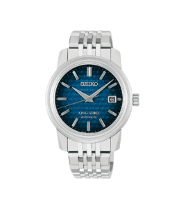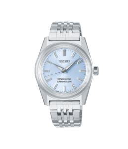 無駄のないダイヤルレイアウト、エッジを際立たせたシャープなケーススタイリングやボックス型のガラス形状など、キングセイコーデザインのオリジナリティを確立したモデルです。