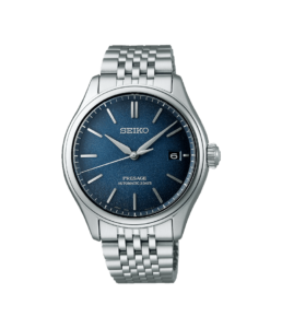 丸みを帯びたカーブダイヤルに、日本人の暮らしを古来より彩ってきた絹のような質感の繊細な型打ち模様を施しました。さらに、インデックスの上面や、秒針と分針の先端も、ダイヤルの球面に合わせて緩やかに曲げました。