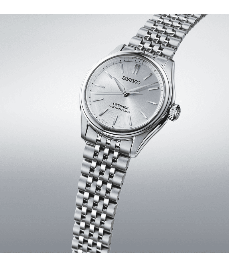1970年代に多く見られた腕時計のブレスレットから着想を得て、優美な多列ブレスレットを新たに開発。両面に丸みを帯びた細かいこまを採用することで、手首に柔軟になじむとともに、肌に接する面積を減らし、快適な着け心地を提供します。