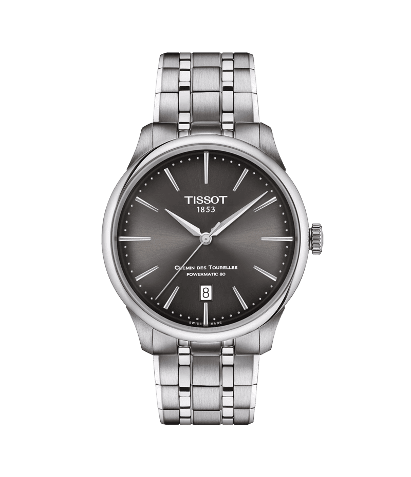 名前には何が込められているのでしょう?シュマン・デ・トゥレルは、1853年の創業以来、美しい時計を作り続けているティソのスイスの山間部にある本社へと続く通りから名付けられました。ティソのアイコンであり、非常に洗練された腕時計です。なめらかなラウンドケースと緩やかなドーム型のサファイアクリスタルは、時代を超えたモダンさを象徴しています。サンレイ仕上げの文字盤とファセットを施したローマ数字が光を的確にとらえ、洗練された印象を与えます。そして、その内側には80時間のパワーと一日中耐磁性を発揮する自動巻きムーブメント、ニヴァクロン パワーマティック80を搭載しています。