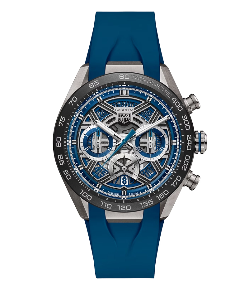 モータースポーツのスリルを象徴する、タグ・ホイヤー カレラ クロノグラフ エクストリームスポーツで、腕元をより刺激的に。大胆なデザインとブルーのアクセントを備えたこのタイムピースは、スピードと革新の真髄を捉えたスケルトンダイヤルが特徴です。レースの熱をスタイリッシュに表現します。