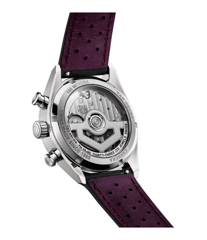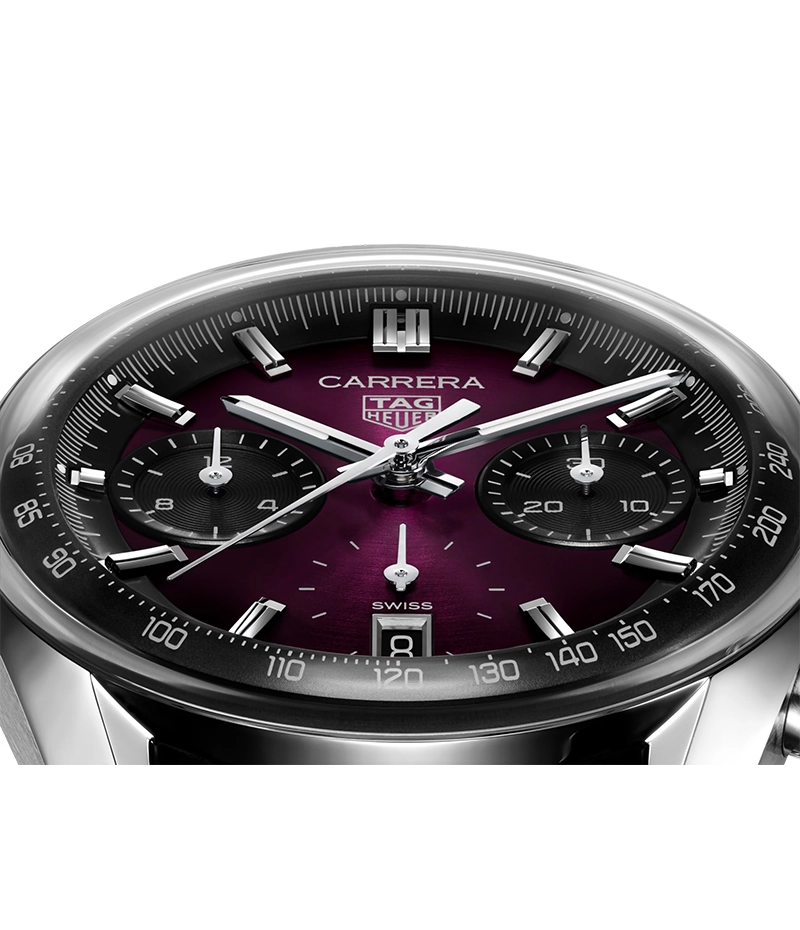 最先端のデザインと鮮やかなカラーの融合がスタイルを格上げするタグ・ホイヤー カレラ クロノグラフ。印象的なサンレイ加工サテン仕上げのスモーキーパープル ダイヤルに、精度とエレガンスを兼ね備えた、どんなシーンにもマッチする大胆なユニセックスのタイムピースです。