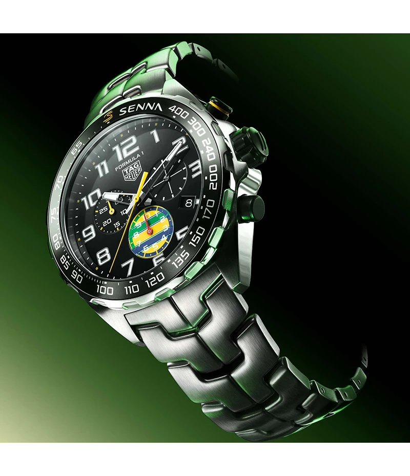 神秘的なパートナーシップを称え、衰えることのないアイルトン・セナのレガシーにトリビュートを捧げる「タイムピース、タグ・ホイヤー フォーミュラ1 クロノグラフ × セナ」。ブラジルGP™で発表されたこのスペシャルエディションは、モーターレーシングファンにとってマストハブとなるタイムピースです。
