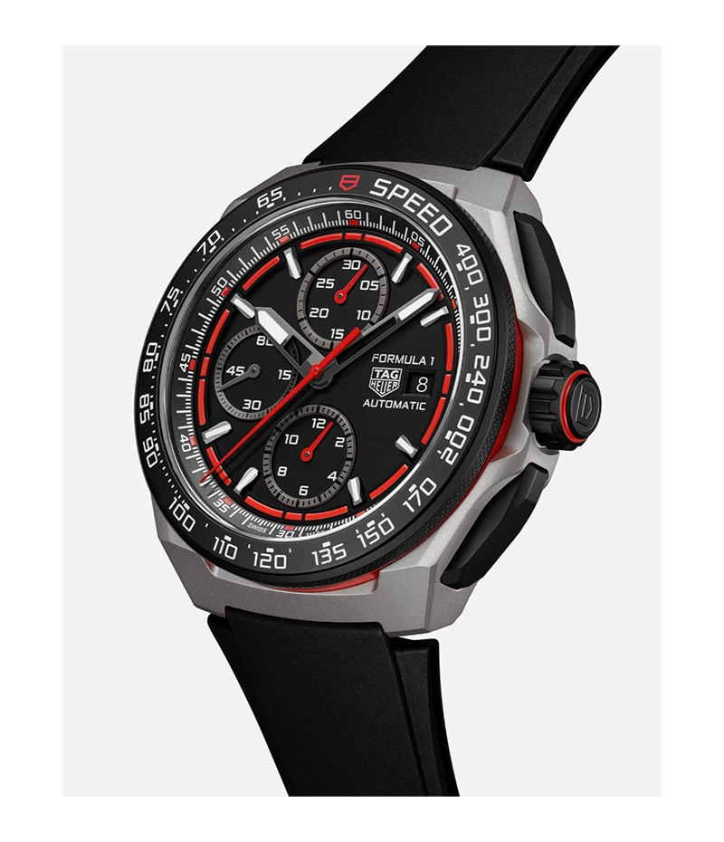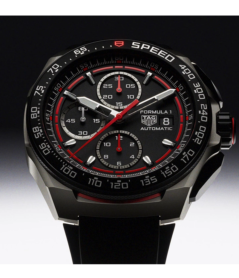 レーシングスピリットを腕元に表す、大胆に生きる人のためにデザインされたケース径44mmの「タグ・ホイヤー フォーミュラ1 クロノグラフ」。